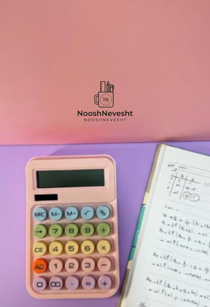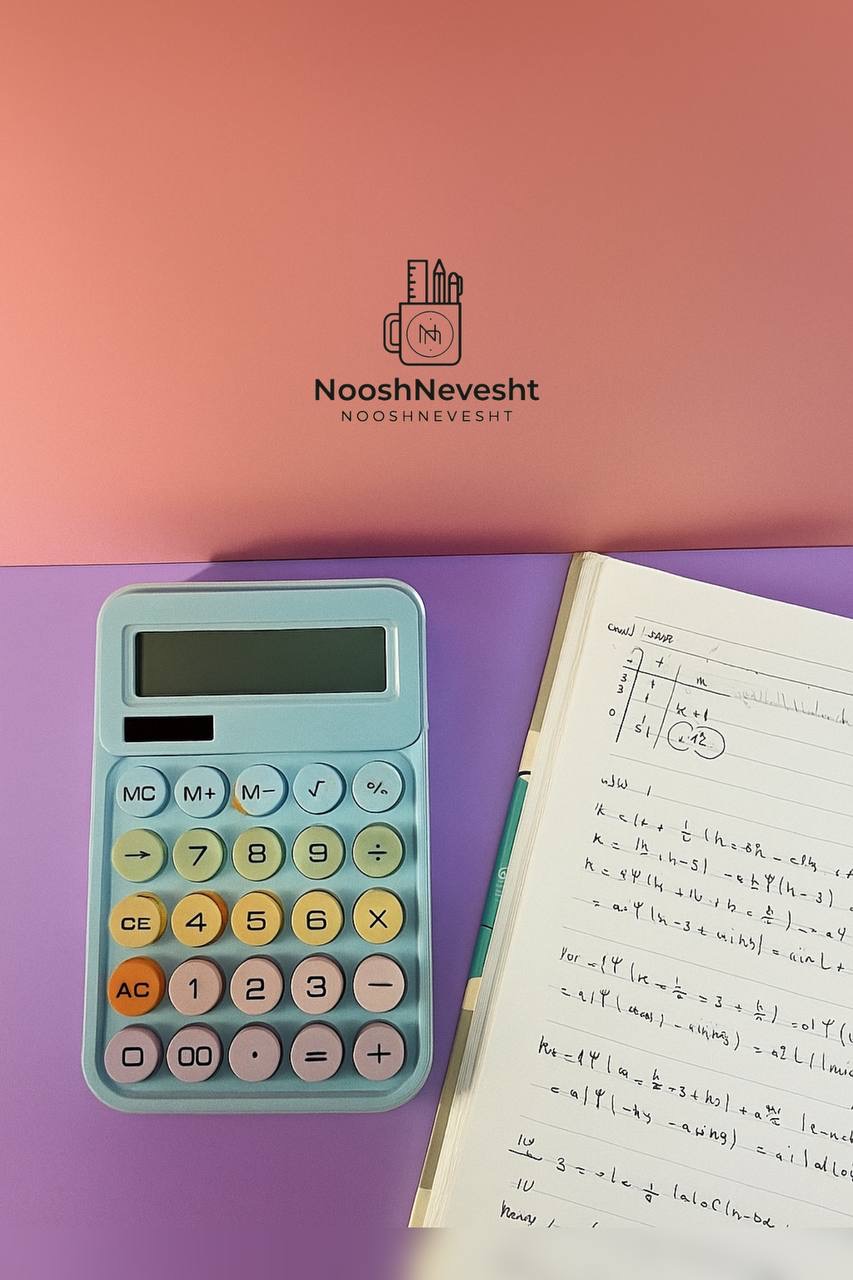 ماشینحساب پاستینی 🧮 دکمههای برجسته، طراحی زیبا ✨ دوام و کیفیت بالا این دستگاه با دو منبع تغذیه، یعنی باتری قلمی (AAA) و انرژی خورشیدی کار میکند🔋
